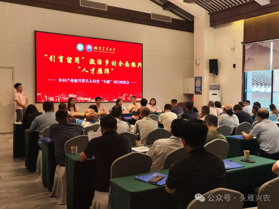 “引育留用”激活乡村全面振兴“人才雁阵”发表时间:2024-08-02 20:37 “引育留用”激活乡村全面振兴“人才雁阵”7月31日,湖南农业大学组织召开湖南省乡村产业振兴带头人培育“头雁”项目座谈会 。2022、2023级“头雁”培育学员代表,导师代表,学校乡村振兴培训学院教师代表等共计50余人参会。